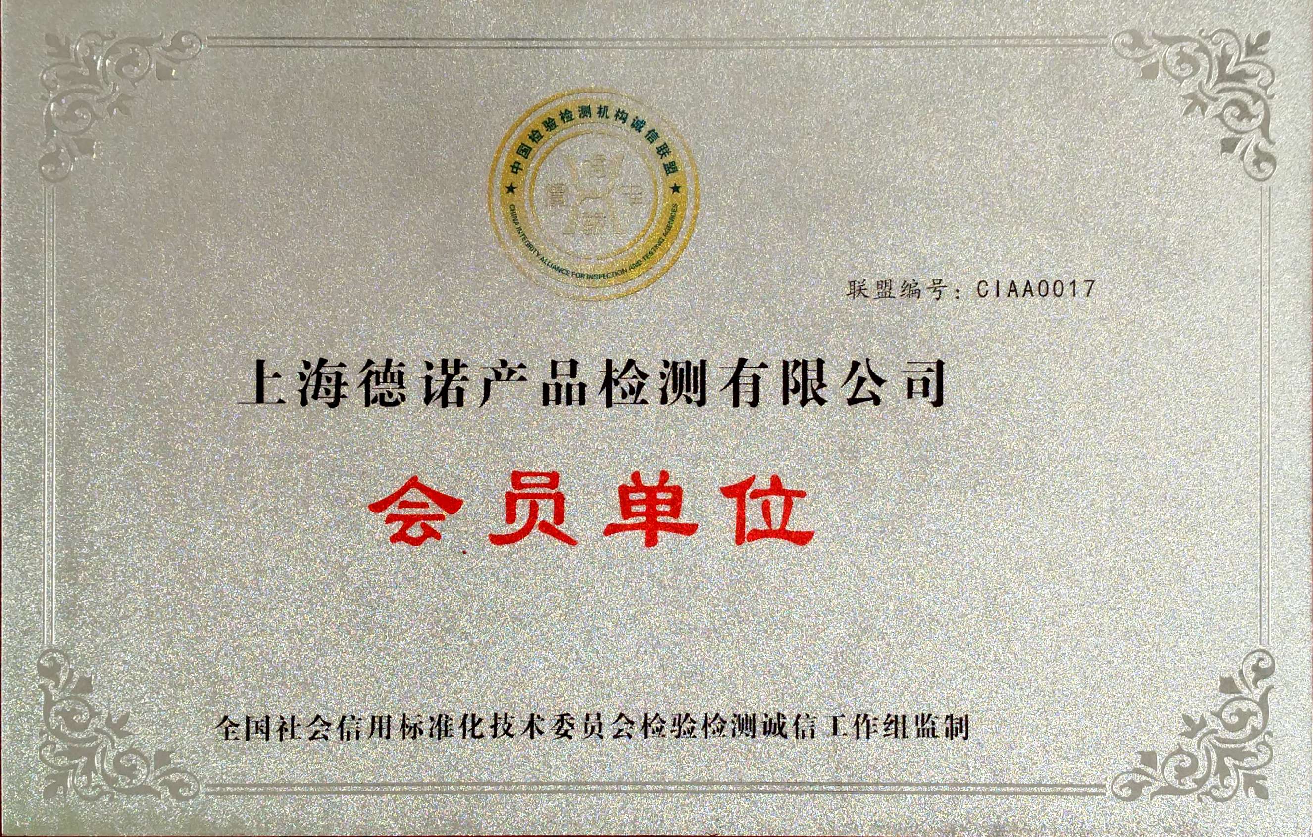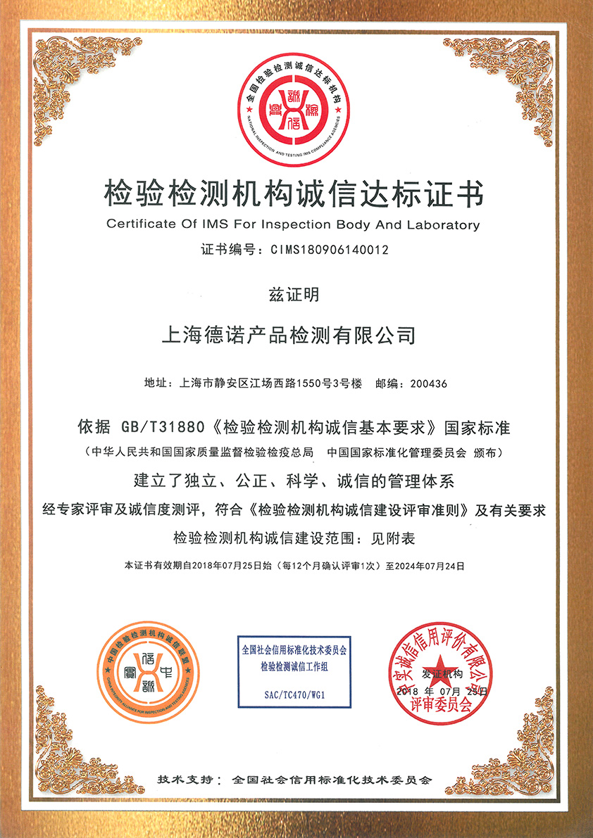 2018.3 2017年度上海市檢驗檢測機構A類等級信用評價試點機構(無證書) |